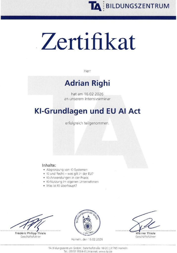 Wir begleiten Ihre Organisation praxisnah auf dem Weg zu einem sicheren und strukturierten Umgang mit Künstlicher Intelligenz.